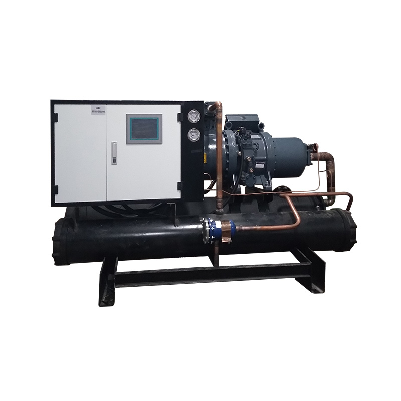 स्क्रू चिलरहरूलाई दुई प्रकारमा विभाजन गर्न सकिन्छ: वाटर-कूल्ड स्क्रू चिलर र एयर-कूल्ड स्क्रू चिलर। तिनीहरूको मुख्य घटकहरूको कारण - कम्प्रेसरले स्क्रू प्रकार अपनाउछ, यसलाई स्क्रू चिलर नाम दिइएको छ। इकाई बाष्पीकरणबाट निस्कने ग्यासको अवस्थामा छ। रेफ्रिजरेन्ट: कम्प्रेसर द्वारा adiabatic कम्प्रेसन पछि, यो एक उच्च तापमान र उच्च दबाव अवस्था हुन्छ। 100HP वाटर-कूल्ड स्क्रू चिलर तपाईंको राम्रो विकल्प हो।