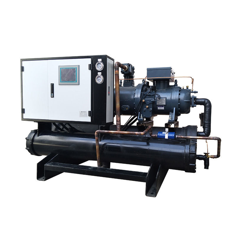 स्क्रू चिलरहरूलाई दुई प्रकारमा विभाजन गर्न सकिन्छ: वाटर-कूल्ड स्क्रू चिलर र एयर-कूल्ड स्क्रू चिलर। तिनीहरूको मुख्य घटकहरूको कारण - कम्प्रेसरले स्क्रू प्रकार अपनाउछ, यसलाई स्क्रू चिलर नाम दिइएको छ। इकाई बाष्पीकरणबाट निस्कने ग्यासको अवस्थामा छ। रेफ्रिजरेन्ट: कम्प्रेसर द्वारा adiabatic कम्प्रेसन पछि, यो एक उच्च तापमान र उच्च दबाव अवस्था हुन्छ।