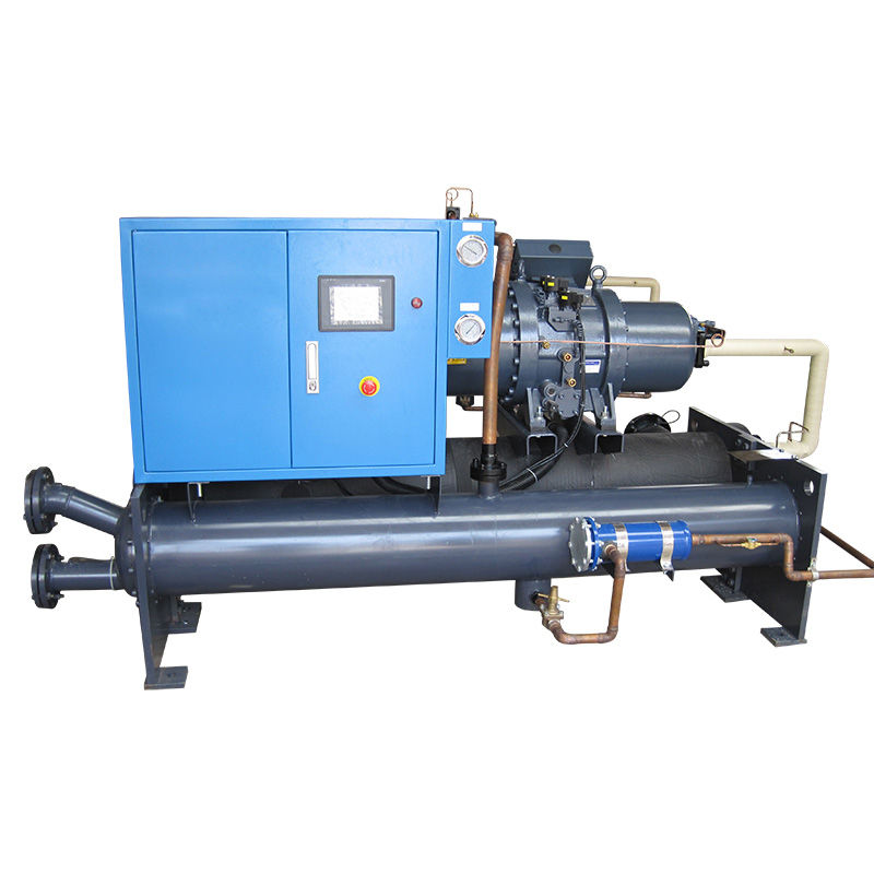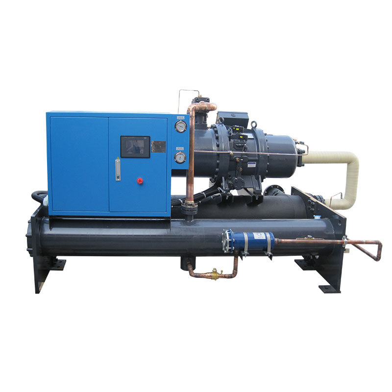 स्क्रू चिलरहरूलाई दुई प्रकारमा विभाजन गर्न सकिन्छ: वाटर-कूल्ड स्क्रू चिलर र एयर-कूल्ड स्क्रू चिलर। तिनीहरूको मुख्य घटकहरूको कारण - कम्प्रेसरले स्क्रू प्रकार अपनाउछ, यसलाई स्क्रू चिलर नाम दिइएको छ। इकाई बाष्पीकरणबाट निस्कने ग्यासको अवस्थामा छ। रेफ्रिजरेन्ट: कम्प्रेसर द्वारा adiabatic कम्प्रेसन पछि, यो एक उच्च तापमान र उच्च दबाव अवस्था हुन्छ।